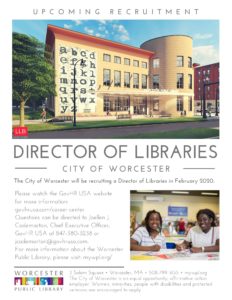 The City of Worcester, MA will be recruiting a Director of Libraries in February 2020.
